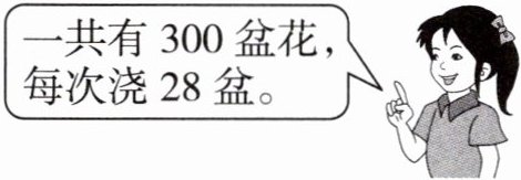 300÷28=10(次)……20(盆) 10+1=11(次)