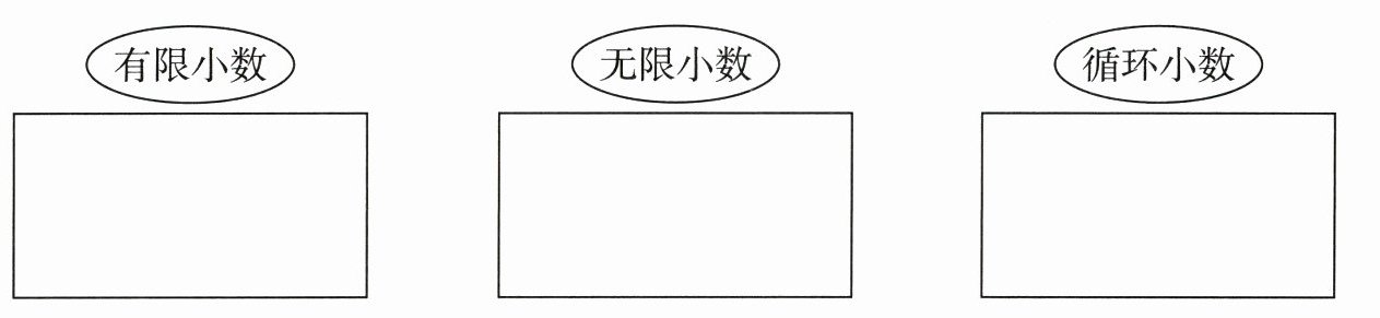 有限小数:4.68,7.294,0.868686 无限小数:2.3737…,2.356432…, $4.\dot{3}\dot{2}$,3.14159…,$0.\dot{0}9\dot{4}$ 循环小数:2.3737…,$4.\dot{3}\dot{2}$,$0.\dot{0}9\dot{4}$
