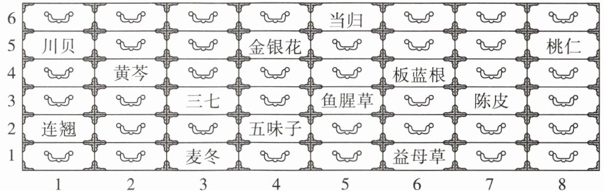 四、仔细观察,用数对表示中药的位置。