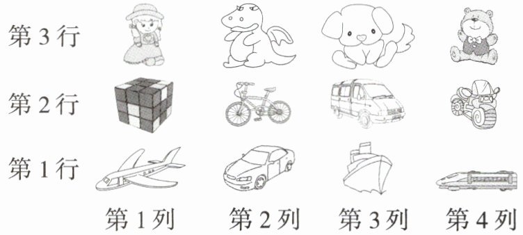 1. 用数对表示下面各玩具的位置。