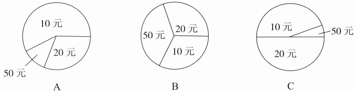 (1)转动哪个转盘,指针落在50元区域的可能性最小?