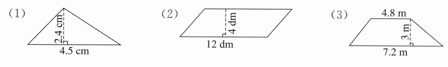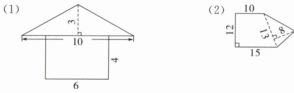 (2)(10+15)×12÷2+13×8÷2=202(cm²)