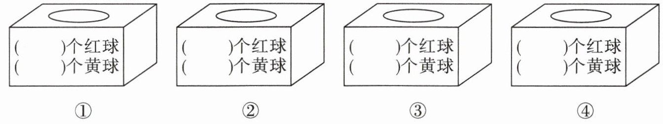 个红球和黄球。(4)④号盒中任意摸出1个球,不可能摸到红球。放