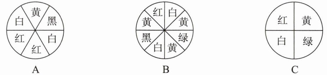 3. 下面三个转盘中,如果想让指针停在黄色区域的可能性大一些,那么应选(