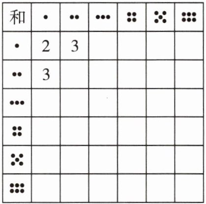 同时掷出两枚骰子,将朝上的点数之和填入表格中。