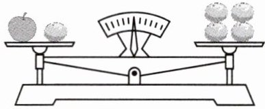 若两边都拿走1个橘子,天平还会平衡吗?1个苹果和几个橘子一样重?