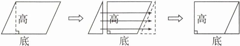 )平行四边形的面积(填“大于”“小于”或“等于”)。因为长方形的面积= 长×宽,所以平行四边形的面积= (底×高