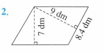 1. 5.6×4=22.4(cm²) 2. 8.4×9=75.6(dm²)
