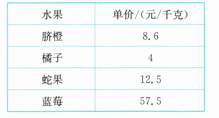 2. 明明和爸爸一起为福利院的老人买了蛇果和蓝莓各 $3.6$ kg。一共需要多少钱?