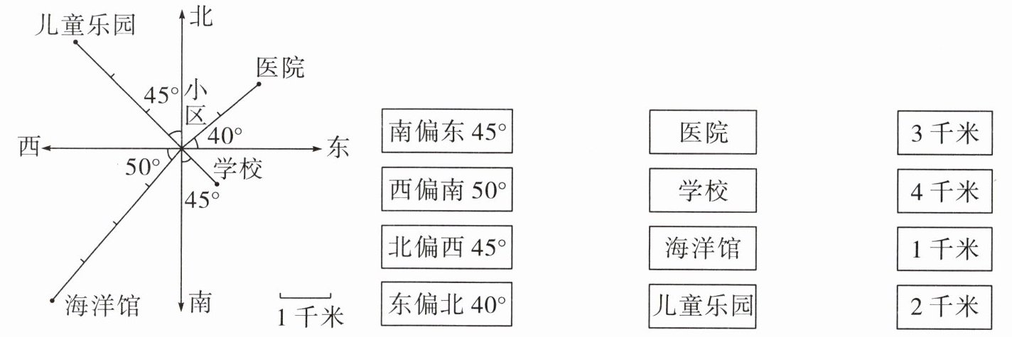 2. 在图上标出物体的位置,要先确定距离,再确定方向。 (