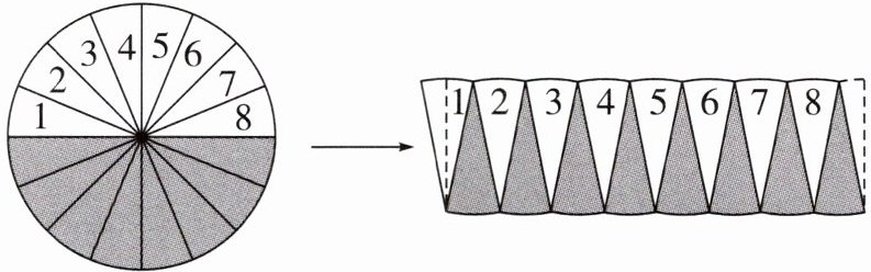 1. 把一个圆按下图切开,拼成近似长方形,近似长方形的周长比圆的周长多12 cm,圆的面积是(