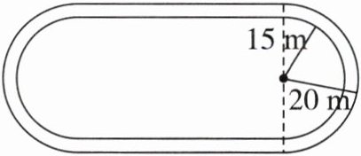 某小学的操场示意图如图所示,周围是一条跑道。小敏沿外圈跑一周,小露沿内圈跑一周,小敏比小露多跑多少米?($\pi取3.14$)