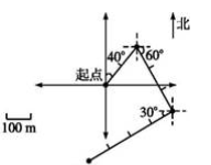2. 起点出发向北偏东$40^{\circ}$方向走200m: