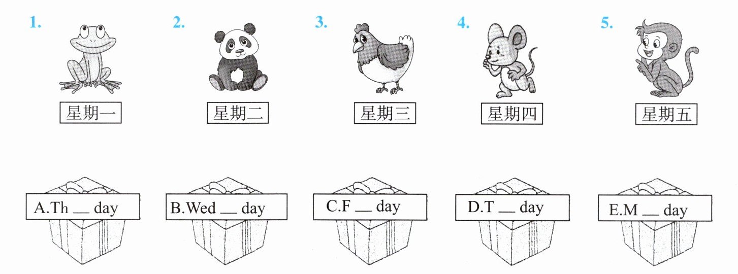 Ⅱ. Fill in the blanks and match. (帮小动物们找到各自的生日礼物,补全单词并连线。)