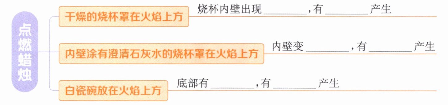2. 将一个内壁涂有澄清石灰水的烧杯罩在蜡烛火焰上方,可以观察到(