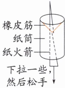 橡皮筋 纸筒 纸火箭 下拉一些,然后松手