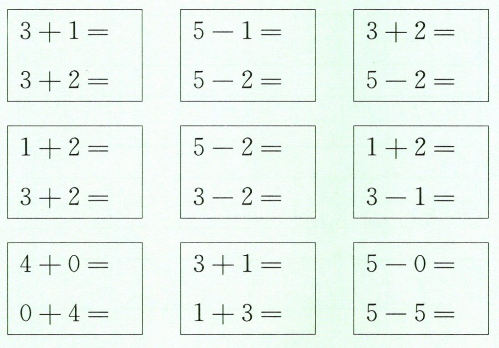 $\boxed{\begin{aligned} 3+1=4\\ 3+2=5 \end{aligned} }$ $\boxed{\begin{aligned} 5-1=4\\ 5-2=3 \end{aligned} }$ $\boxed{\begin{aligned} 3+2=5\\ 5-2=3 \end{aligned} }$