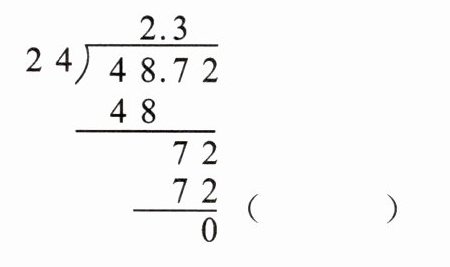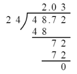 (2)$\begin{array}{r} 2.3\\ 24\enclose{longdiv}{48.72}\\ 48\\ \hline 72\\ 72\\ \hline 0\end{array} $(