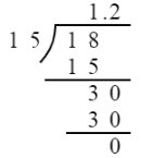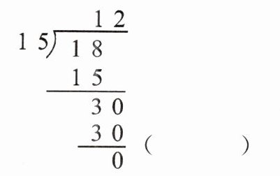 (1)$\begin{array}{r} 12\\ 15\enclose{longdiv}{18}\\ 15\\ \hline 30\\ 30\\ \hline 0\end{array} $(