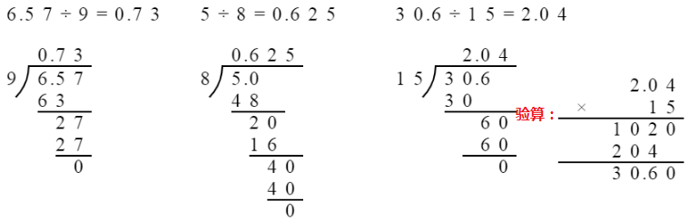 $6.3÷5$( ) $7.2÷6$( ) $3÷12$(
