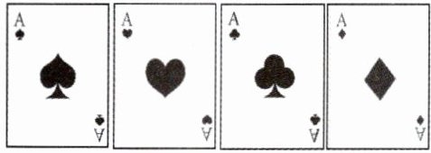 (2)把右边的四张扑克牌打乱顺序后,反扣在桌面上。