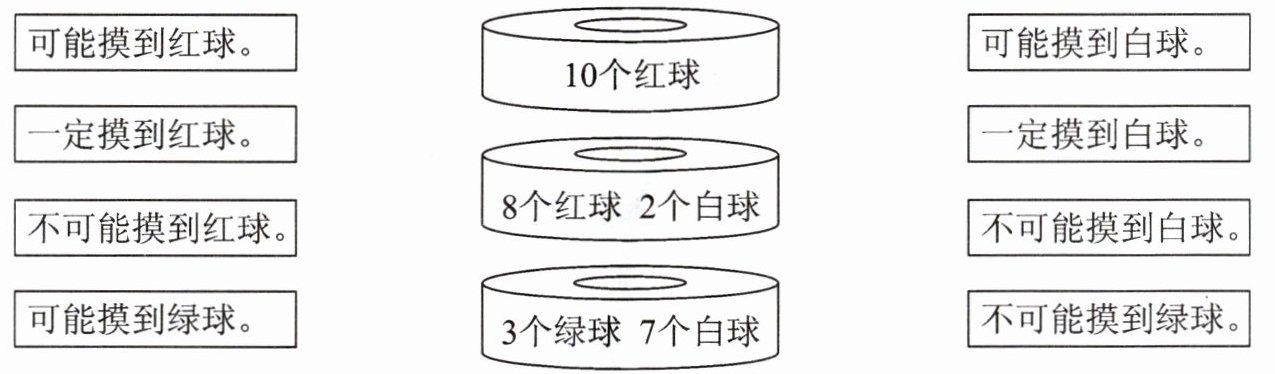 3.从盒子里摸出一个球(盒子里的球大小、材质相同),会是什么结果?连一连。