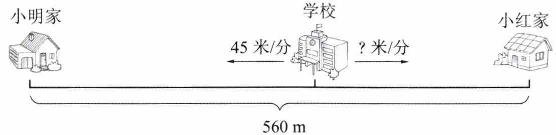 2.放学后,小明和小红同时离开学校步行回家,7分钟后同时到家。小明平均每分钟走45 m,小红平均每分钟走多少米?