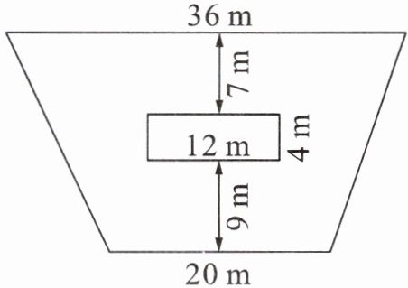 2.光明小学有一块梯形的地,中间有一个长方形的水池(如下图),其余的地方是草坪。草坪的面积是多少平方米?