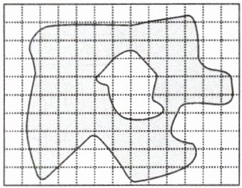 5.生态公园有一个景观池塘,池塘的中心是一座假山(如右图)。如果图中每个小方格的面积是$1 m^2,$请你估计这个池塘的水面面积。