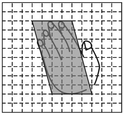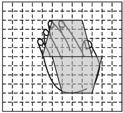 3.右图中每个小方格面积是$1 cm^2,$请估计这个手掌的面积。