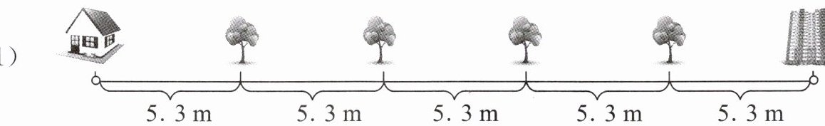 (1)4 5 5.3×(4+1)=26.5(m)或5.3×5=26.5(m) 间隔数 - 1
