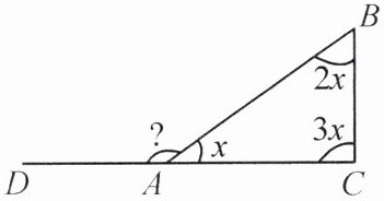 2. 如图,在△ABC中,∠BAC = x,∠B = 2x,∠C = 3x,则∠BAD的大小为(