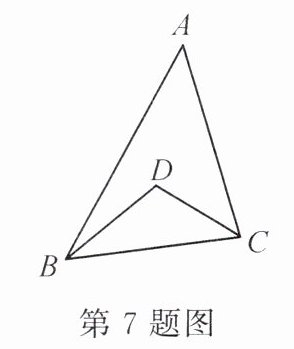 7. 如图,在△ABC中,∠A = 40°,D是∠ABC和∠ACB的平分线的交点,则∠BDC的度数为
