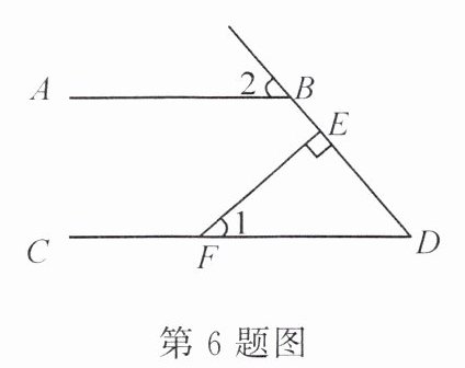 6. 如图,AB // CD,FE⊥BD,垂足为E,∠1 = 50°,则∠2的度数为(