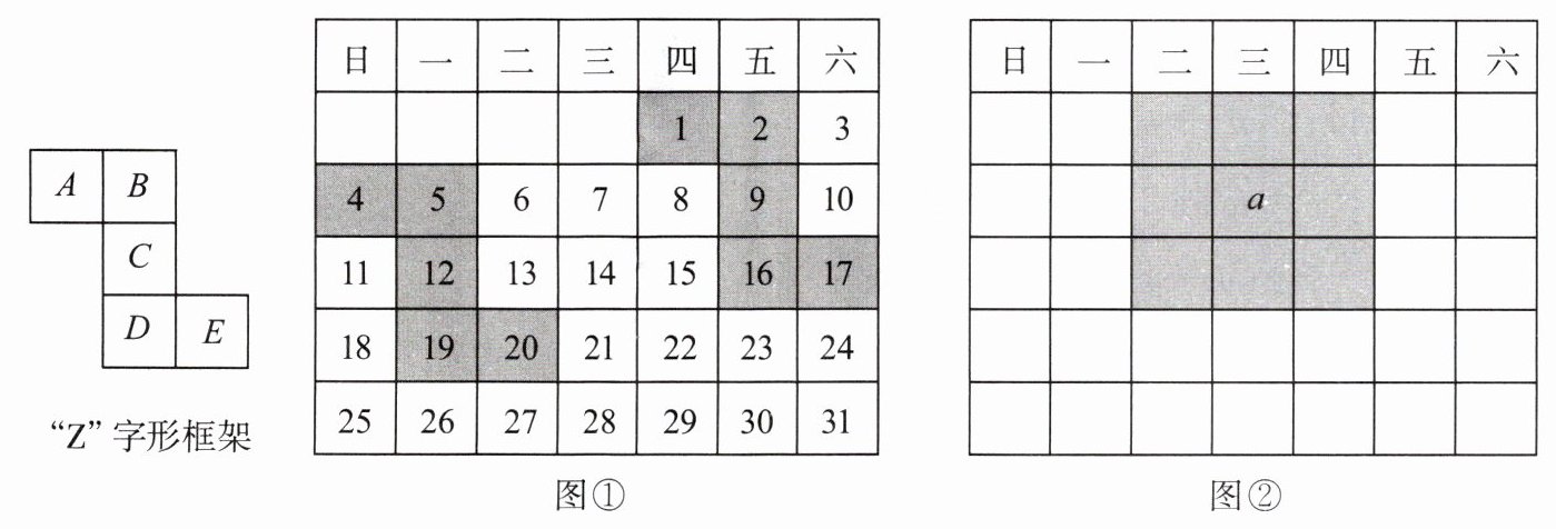 (2)设“Z”字形框架中位置C上的数为x,则A,B,D,E四个数依次为x-8,x-7,x+7,x+8.