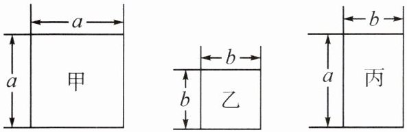 9. 现有甲、乙、丙三种不同的正方形或长方形纸片若干张(边长如图)。要用这三种纸片无重合、无缝隙拼接成一个大正方形,先取甲纸片$1$张,乙纸片$4$张,还需取丙纸片