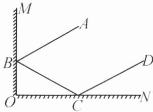 16. 如图,OM,ON是两块互相垂直的平面镜,入射光AB经平面镜OM反射后,沿BC又入射到平面镜ON上,再沿CD反射出去。