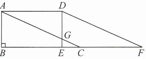 9. 如图,在 $\triangle ABC$ 中,$AB = a$,$BC = 2a$,$\angle B = 90^{\circ}$,将 $\triangle ABC$ 沿 $BC$ 方向平移 $b$ 个单位长度得 $\triangle DEF$(其中 $A$,$B$,$C$ 的对应点分别是 $D$,$E$,$F$),设 $DE$ 交 $AC$ 于点 $G$,若 $\triangle ADG$ 比 $\triangle CEG$ 的面积大 $8$,则代数式 $a(a - b)$ 的值为(