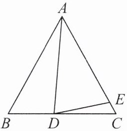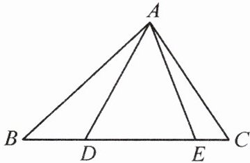 5. 如图,在$\triangle ABC$中,$D$,$E$为$BC$上的两点,$\angle BAE = \angle BEA$,$\angle CAD = \angle CDA$,$\angle DAE = 50^{\circ}$.求$\angle BAC$的度数.