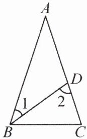 2. 如图,在$\triangle ABC$中,$BD$平分$\angle ABC$,$\angle 1 = \angle A$,$\angle 2 = \angle C$,求$\angle A$的度数.
