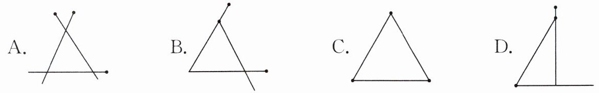 1. 下面是小红用 3 根火柴组成的图形,其中是三角形的是(