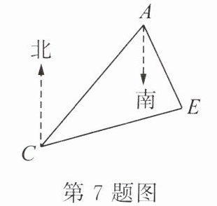 7. 如图,$C$ 处在 $A$ 处的南偏西 $40^{\circ}$方向,$E$ 处在 $A$ 处的南偏东 $25^{\circ}$方向,$E$ 处在 $C$ 处的北偏东 $80^{\circ}$方向,则 $\angle AEC$ 的度数为(