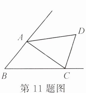 11. 如图,$\triangle ABC$ 的两个外角平分线交于点 $D$,若 $\angle B = 50^{\circ}$,则 $\angle D$ 的度数为