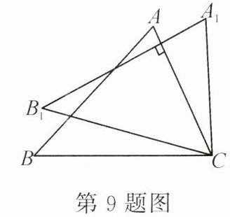 9. 如图,将 $\triangle ABC$ 绕点 $C$ 按顺时针方向旋转 $20^{\circ}$,使点 $B$ 落在点 $B_1$ 位置,点 $A$ 落在点 $A_1$ 位置,若 $AC\perp A_1B_1$,则 $\angle BAC$ 的度数为(