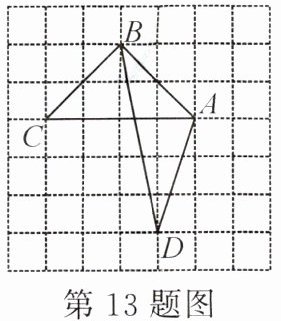 13. 如图所示的网格是正方形网格,$A$,$B$,$C$,$D$ 是网格线交点,则 $\triangle ABC$ 的面积与 $\triangle ABD$ 的面积的大小关系为 $S_{\triangle ABC}$