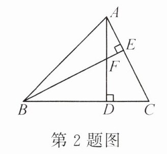 2. 如图, 在$\triangle ABC$中,$AD \perp BC$, 垂足为$D$,$BE \perp AC$, 垂足为$E$,$AD$,$BE$交于点$F$,$\triangle ADC \cong \triangle BDF$. 若$BD = 4$,$CD = 2$, 则$\triangle ABC$的面积为(