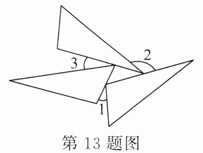 13. 三个全等三角形依图摆放, 则$\angle 1+\angle 2+\angle 3$的度数为