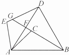 14. 如图,$\triangle ABC \cong \triangle ADE$,$BC$的延长线交$DA$于点$F$, 交$DE$于点$G$,$\angle ACB = 105^{\circ}$,$\angle CAD = 10^{\circ}$,$\angle ABC = 25^{\circ}$, 求$\angle DGB$的度数.