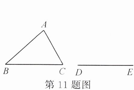 11. 如图,$\triangle ABC$是不等边三角形,$DE = BC$, 以$D$,$E$为两个顶点作位置不同的三角形, 使所得三角形与$\triangle ABC$全等, 这样的三角形最多可以作(