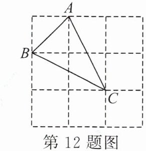 12. 在如图所示的$3×3$的正方形网格中,$\triangle ABC$的顶点都在小正方形的格点上, 这样的三角形称为格点三角形. 在网格中画与$\triangle ABC$全等($\triangle ABC$除外)的格点三角形, 最多可以画(